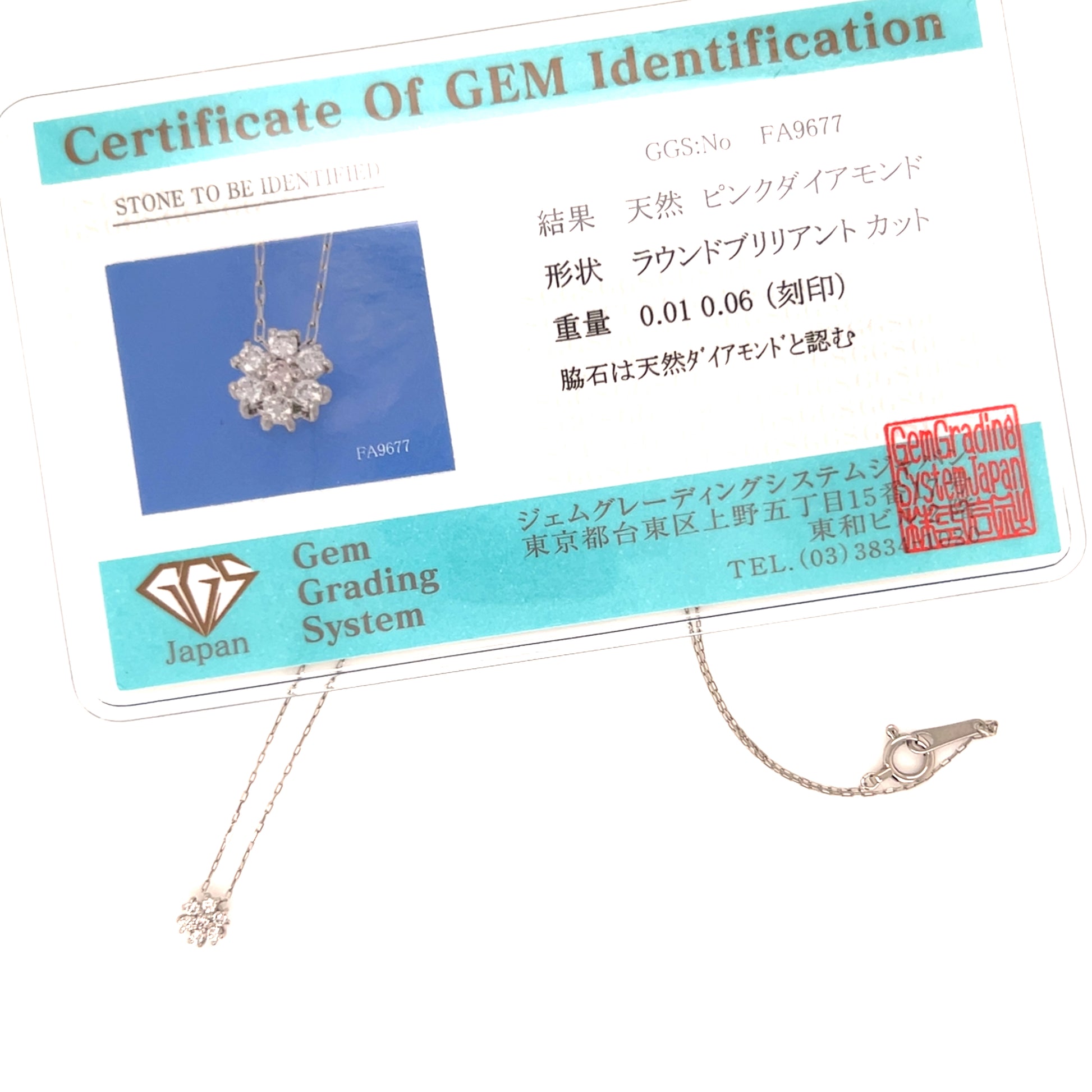 Natural Pink diamond: 0.01ct, Natural diamond: 0.06ct